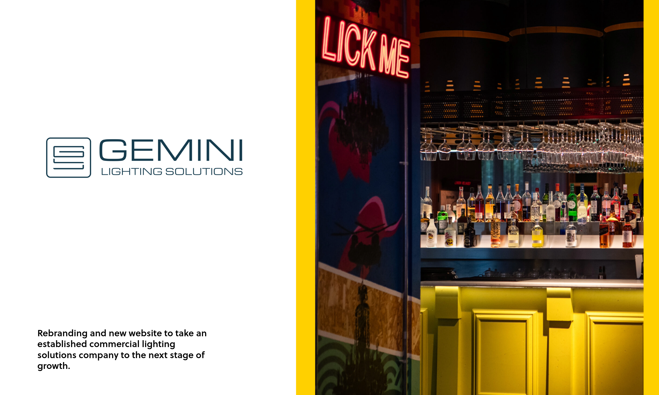 Gemini Lighting Solutions is an established family business, founded over 20 years ago. The founder and CEO was looking to take the business to its next stage of growth, and needed a brand identity which represented the level of skill and quality of their services. This included on-location photo shoots to capture their work in all its glory.